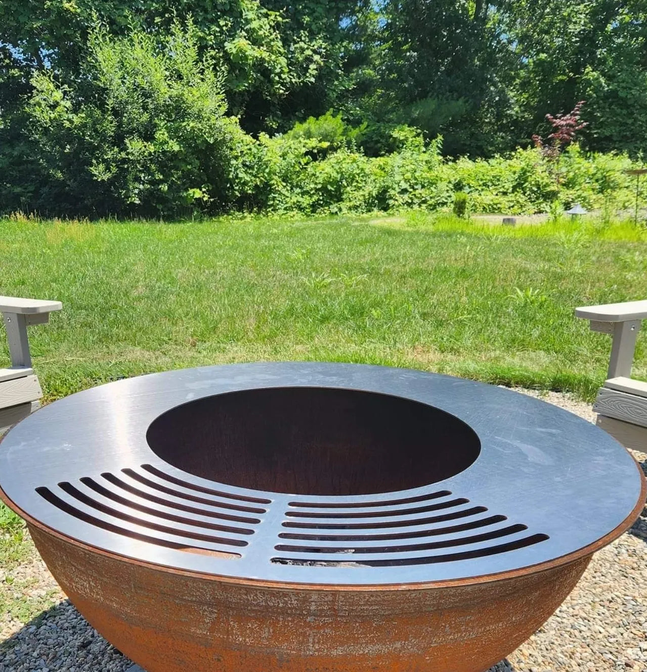 Removable stainless steel cool top, turn your burn bowl into a wood fired grill. 6 people can gather around and cook their own food, making for an interactive cooking experience. Part regular grill part flat top, you can cook virtually anything from meats, vegetables, fish, even eggs and pancakes.