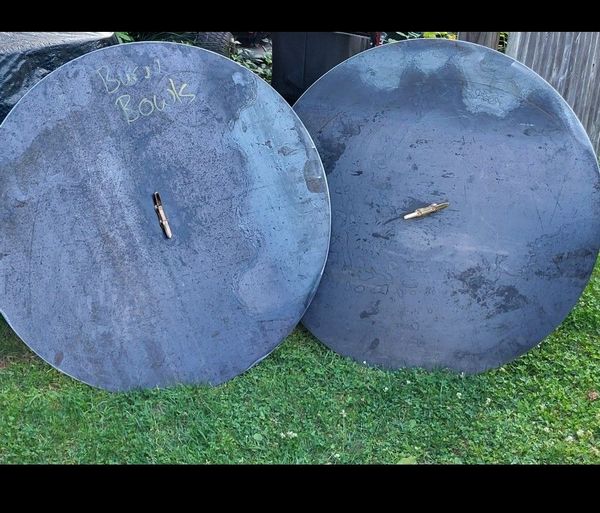 41" diameter steel lid with brass cleat handle. Serves 3 purposes.